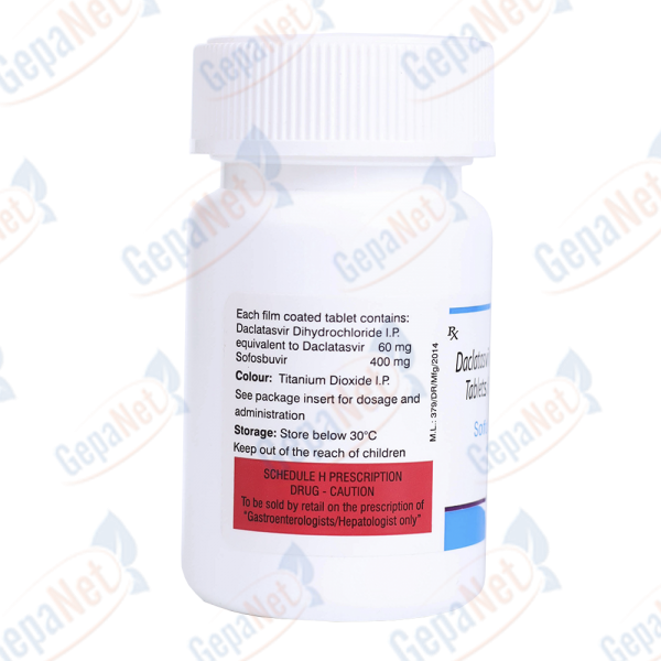 В состав входит 400 мг софосбувира и 60 мг даклатасвира.