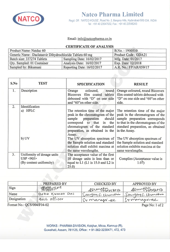 | Hepcinat Natdac | 10000 ք | 30000 ք | 1, 2, 3 | |